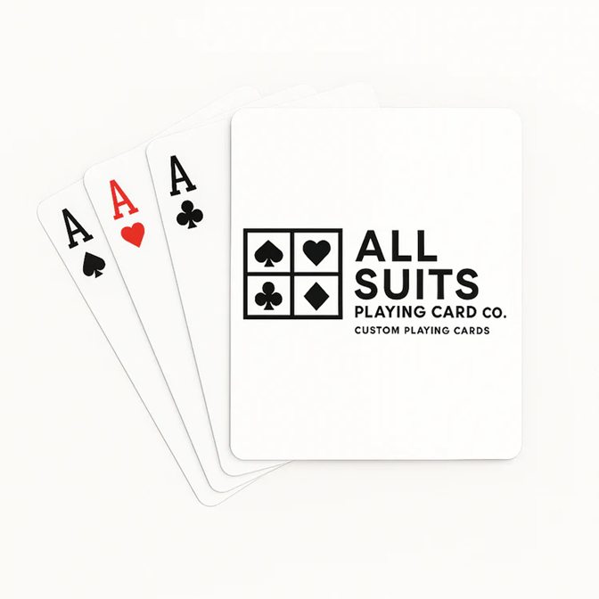 Welcome to All Suits Playing Card Co., the trusted name in high-quality custom playing card manufacturing for brands, designers, retailers, distributors, and creators of all kinds for over 25 years! We specialize in delivering precision-crafted custom playing cards — right here in the USA!